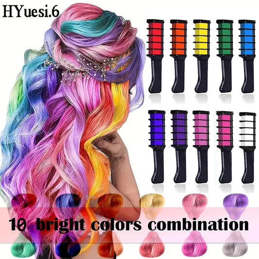 10 Color Washable Hair Chalk Combs Portable Temporary Hair Dye Hairbrush for Girls Birthday Halloween Cosplay Party Makeup Tools
