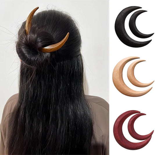 Handcarved Crescent Hair Fork Simple Wooden Moon Hairpin Modern High-End Half Moon Hairpin Daily Hair Curling Wooden Handcrafted