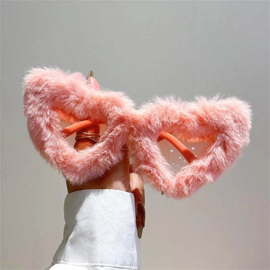 Heart Shape Furry Sunglasses for Women Fashion Vintage New in Shades Eyewear Retro Brand Design UV400 Party Sun Glasses